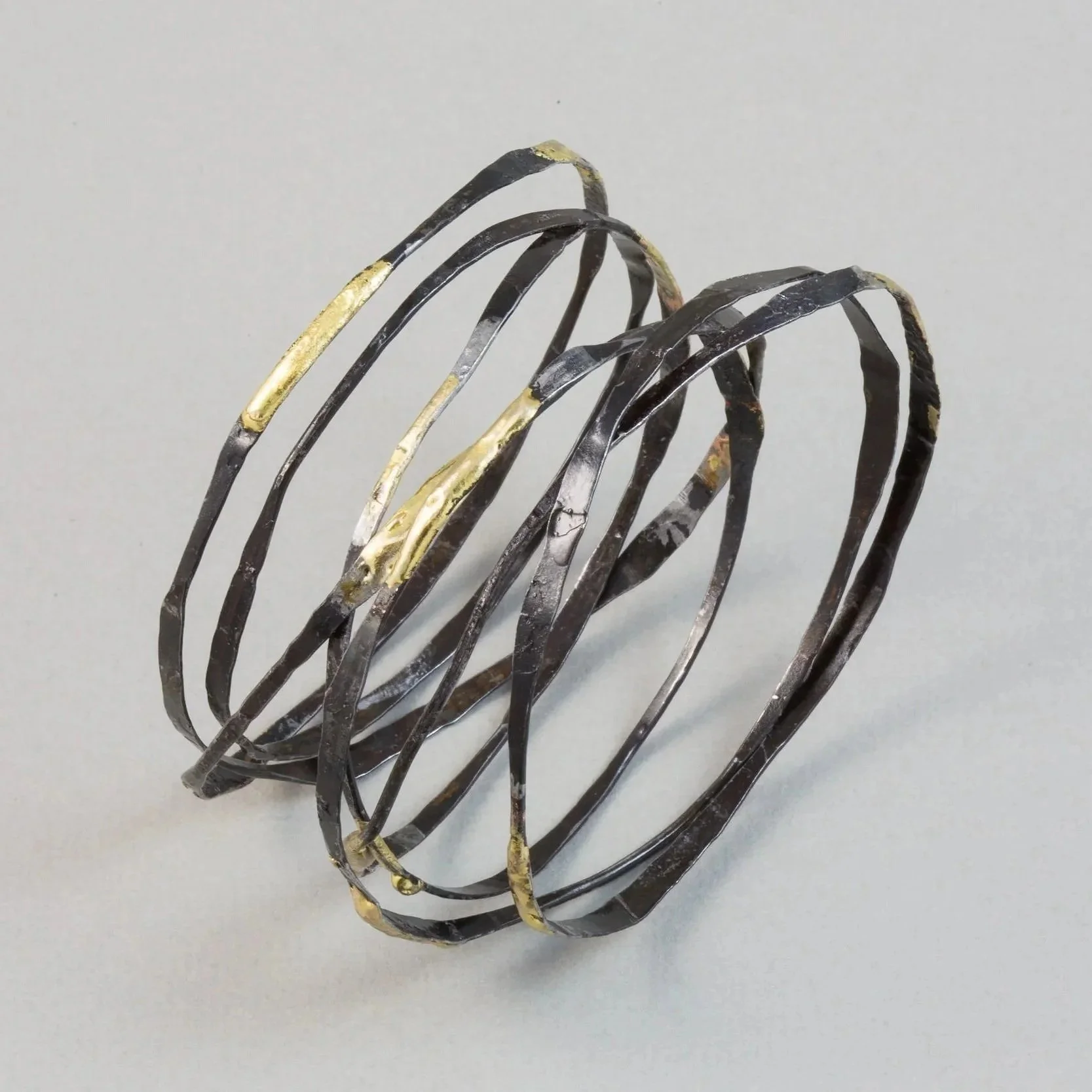 Ann Catrin Evans is a Welsh designer-maker who draws on her background as a blacksmith to create dramatic iron jewellery. Her work encapsulates a spirit of beauty with functionality. It is understated yet displays exceptional craftsmanship at the same time.