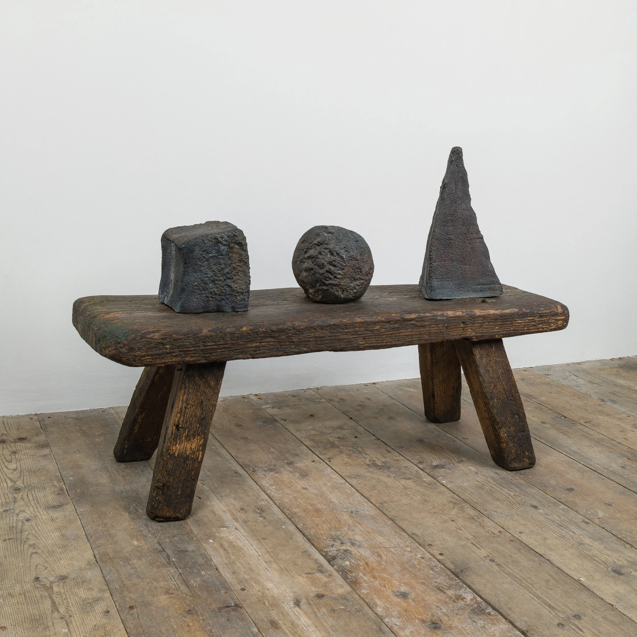 Internationally renowned sculptor David Nash has been living and working in Blaenau Ffestiniog since 1967. Known for his work in wood, he only uses trees that have fallen naturally or had to be felled for reasons of safety, disease or age. He makes work from the green wood, carving and sometimes charring pieces. Nash uses a whole tree, quarrying the ideas as well as the material to waste nothing. Frequent motifs include columns, vessels, crosses, eggs, and the platonic solids – sphere, cube and pyramid.