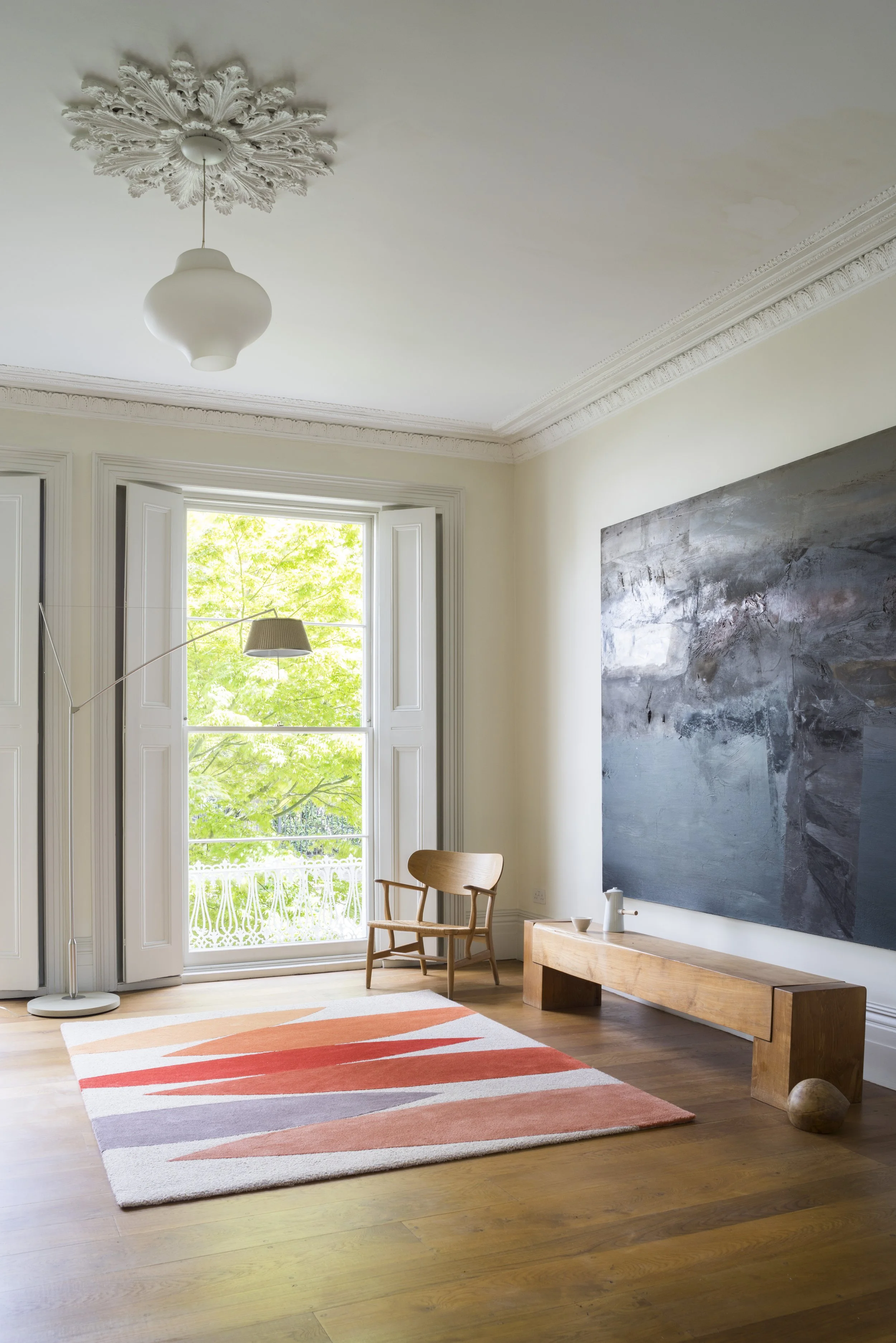 Most of Helen’s work is by commission and most commissions come from architects. Commissions are her happy place, she enjoys the challenge of being taken her out of her comfort zone. It’s very much a collaborative process and she much prefers a decisive client who she’s happy to work with. Her rugs work very well in different colourways, always a sign of strong design. And Helen’s functional (even practical) way with a rug design is perhaps her greatest asset. It has seen her weather many trends and fashions in rugs. And it has allowed her to come out the other end of 40 years in business not only smiling but looking towards the next challenge, too.