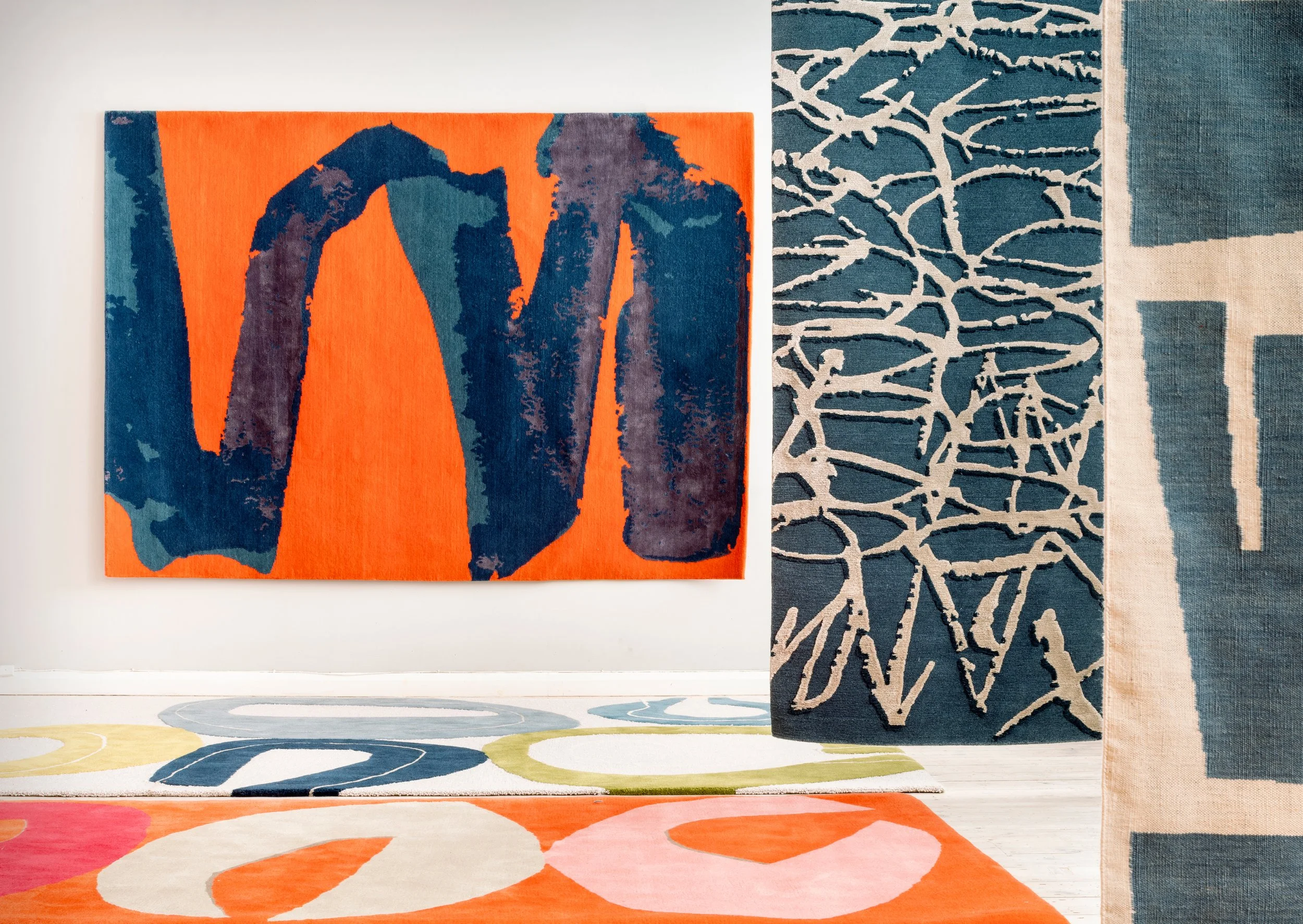 ….Helen Yardley is a designer of experience and excellence known primarily for her rug designs. In 2023 she celebrates having been at the top of her game for 40 years. A solo exhibition across all three galleries at Ruthin Craft Centre is an apt marker for this. The exhibition will showcase her tufted, flatweave and hand-knotted rugs, her lesser-seen acoustic felt pieces and some new Dalles de verre glass work.
