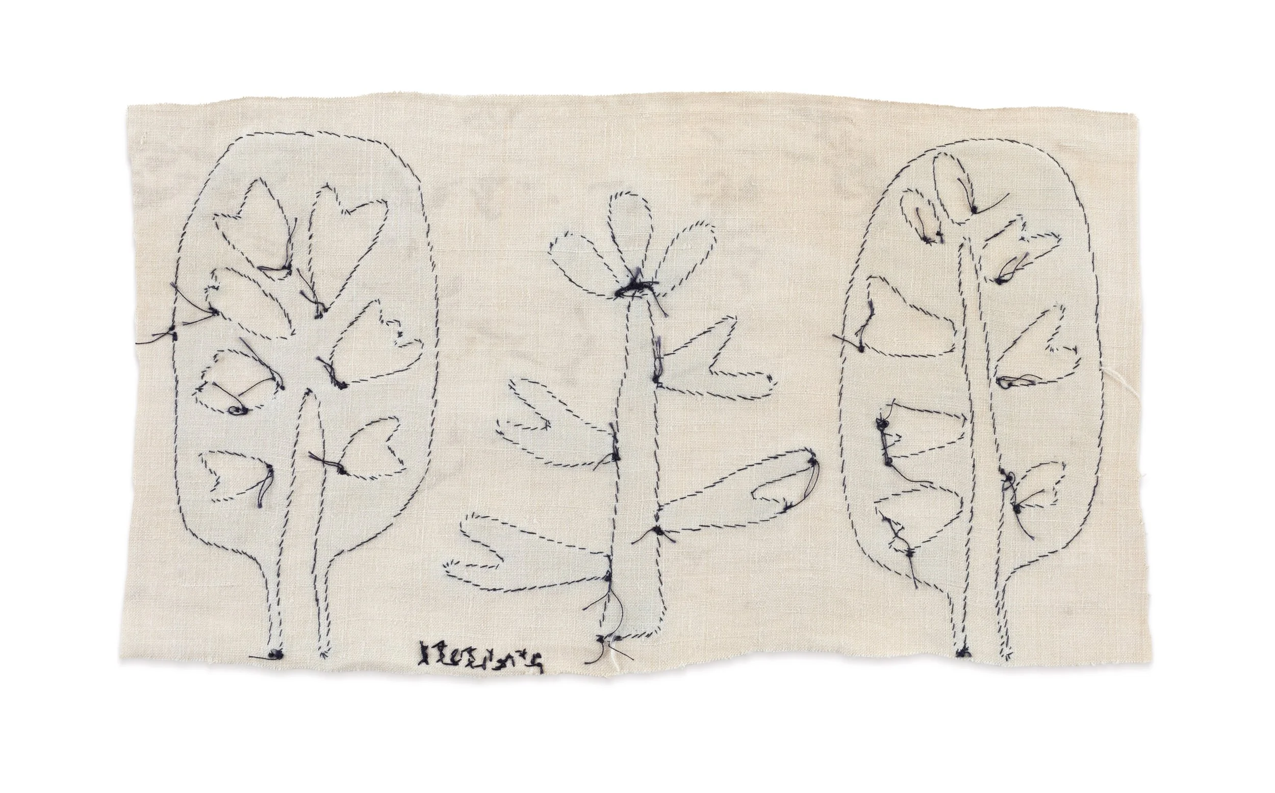 Combining a daily drawing practice with the ancient art of indigo dyeing, Jeanette Orrell’s work reflects the power of art to process life’s events. Drawings on Indigo brings together a body of work developed in the period following the loss of her father, contemplating experiences of mourning, recovery and regrowth. The work speaks to universal experience through a personal journey, sensitively and eloquently conveying the slow patterns of regrowth that follow grief. Abstracted botanical forms resist-dyed onto wool and hand-stitched collages made from naturally dyed linens show an artistic practice that employs a range of creative vocabularies whilst remaining rooted in drawing.