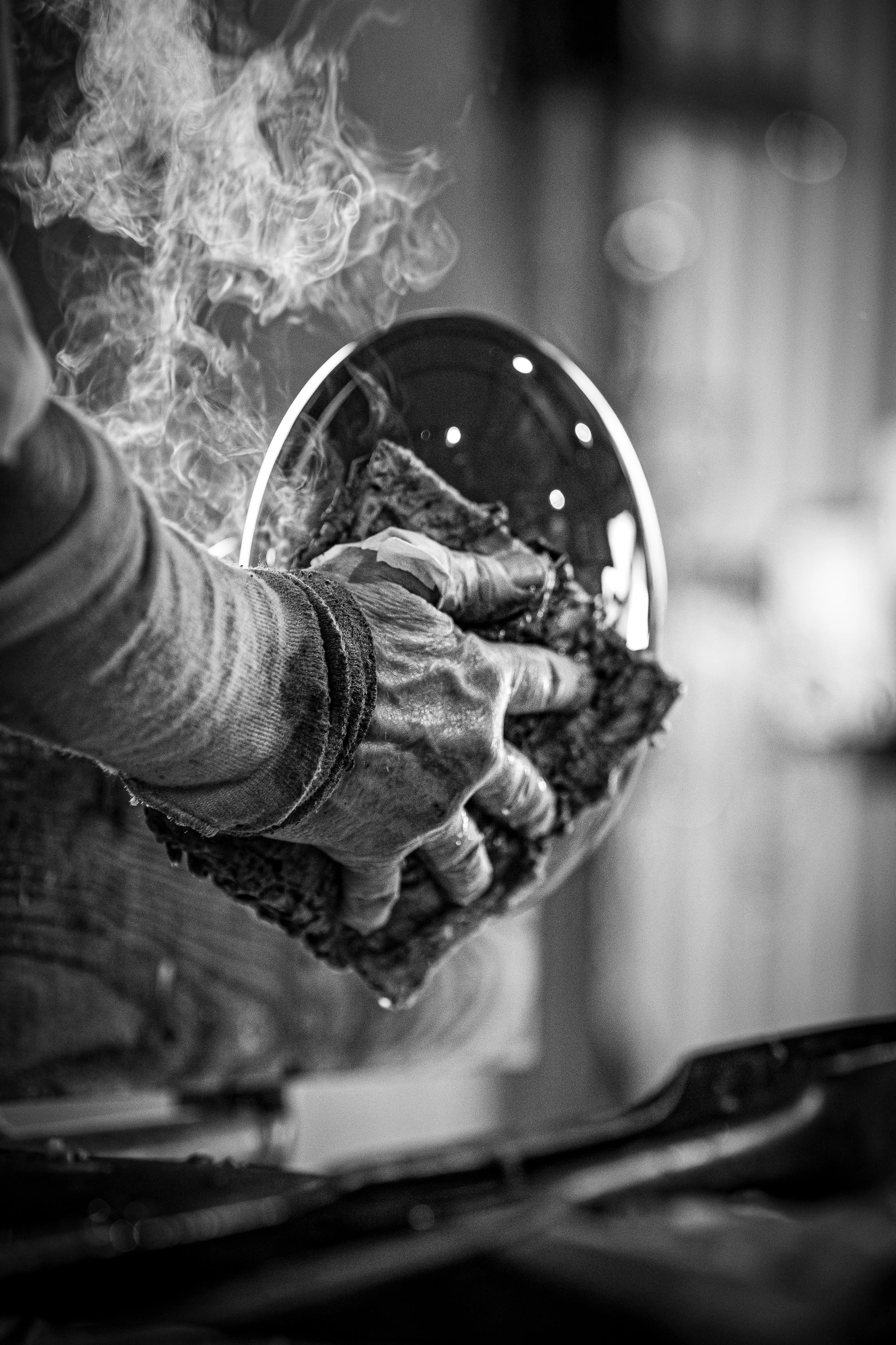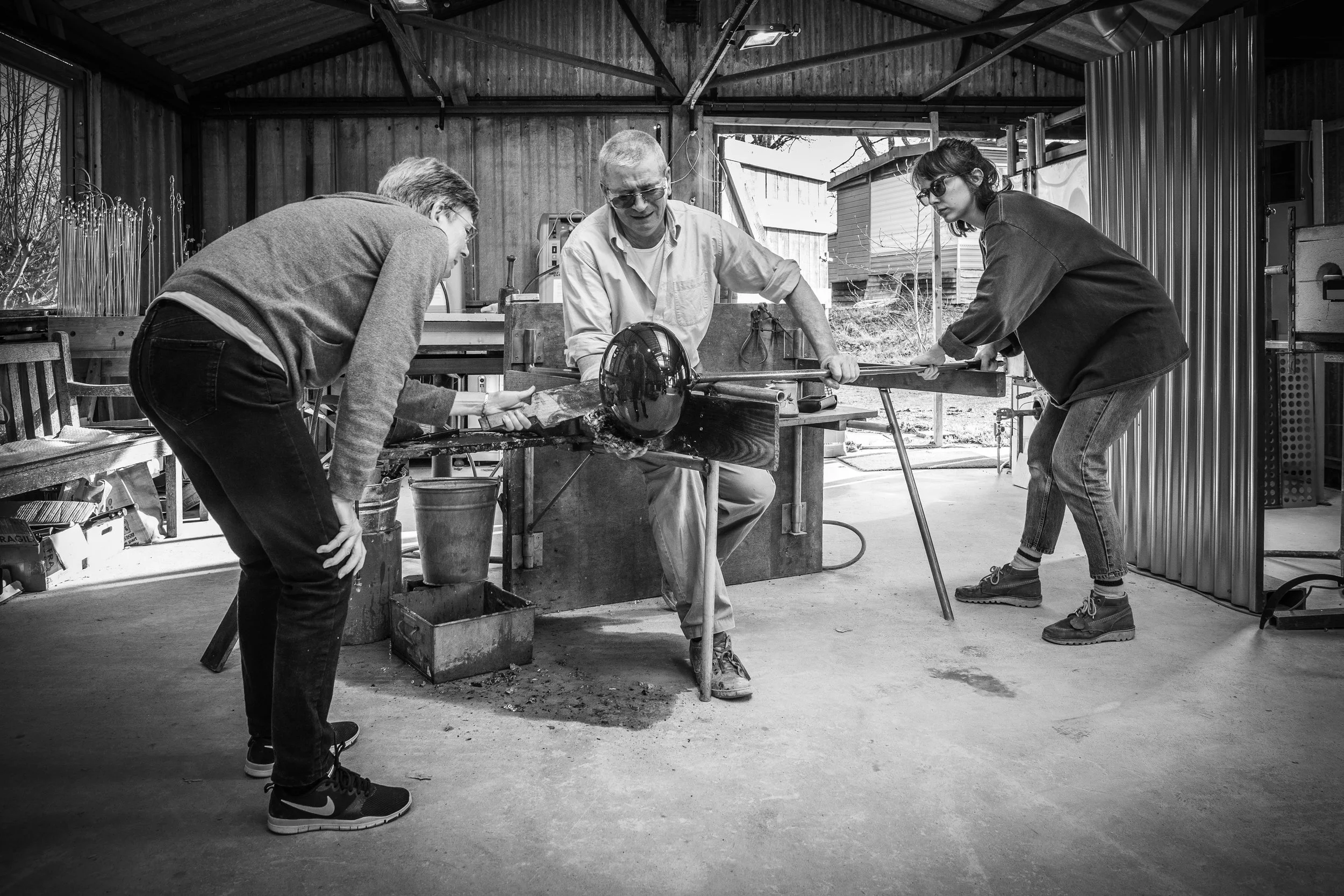 ….The work of Neil Wilkin and Rachael Woodman is about love – of materials; of process; of natural and spiritual worlds. As makers they have committed their lives to a pursuit of perfection in form and colour, harnessing the unique optical and physical qualities of glass. Almost forty years since initiating their collaborative venture in Bath in 1984, Harvest: Fruit Gathering is their first opportunity to present their distinctive bodies of work together.