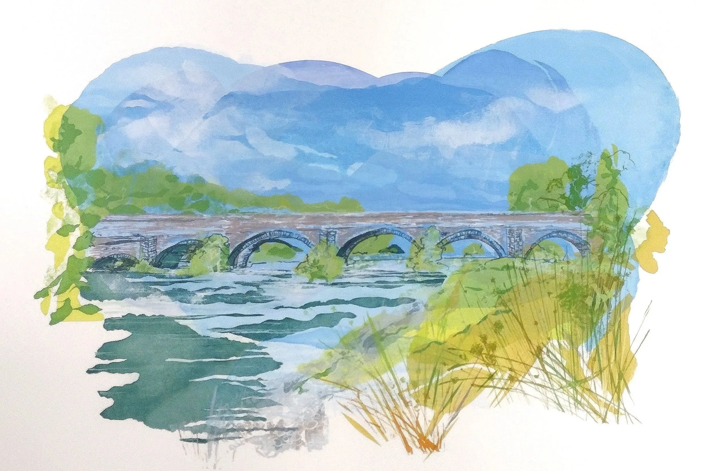 Tara Dean works as an illustrator and printmaker and also runs workshops for community groups and schools across Denbighshire. She is inspired by the landscape of the Vale of Clwyd and all her work begins with sketches she has made along the coast and in the mountains.