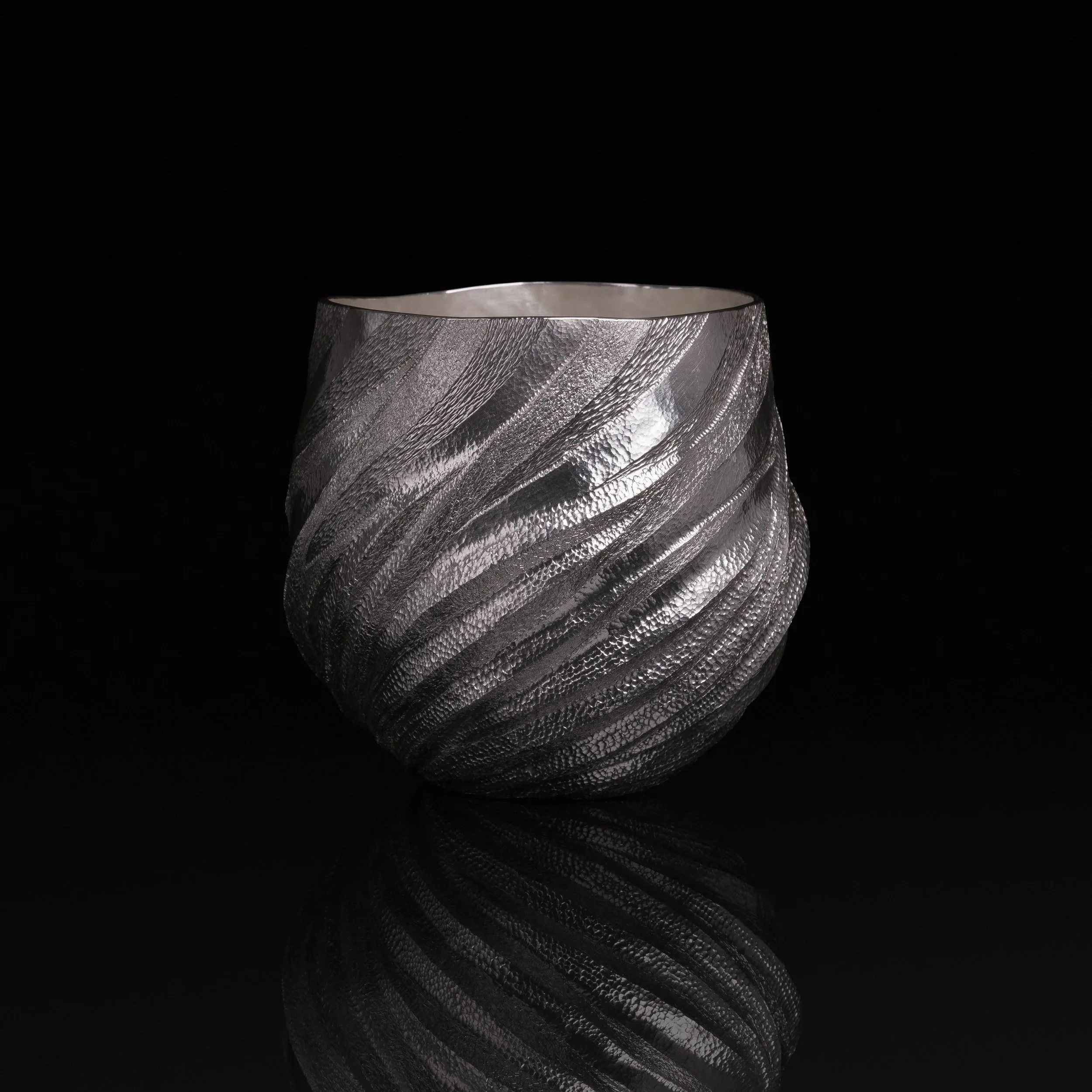 Yusuke Yamamoto is an award-winning silversmith from Japan, now living on the Llyn Peninsula in North Wales. He is known for his distinctive surface texture and hammered marks on sculptural silverware.“My work is a manifestation of my everyday observations. Everything that I experience in life has the potential to be translated into my practice, for example, the smells in a green dense forest, the noise and colour during a trip to the country or to the city, the patterns of a mathematical expression on a blackboard. These stimulate my curiosity and creative obsession which leads to its own story of silver.